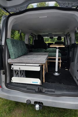 Już jest nasza nowa zabudowa RAXO BEEVAK. Rozsuwane łóżko dla jednej lub dwóch osób, możliwość przewożenia roweru oraz stolik w środku auta. Miejsce na lodówkę kompresorową.