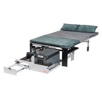 Łóżko po rozłożeniu z materacem: 1100 mm x 1910 mm. Regulowana długość łóżka 1760 lub 1910 mm.
