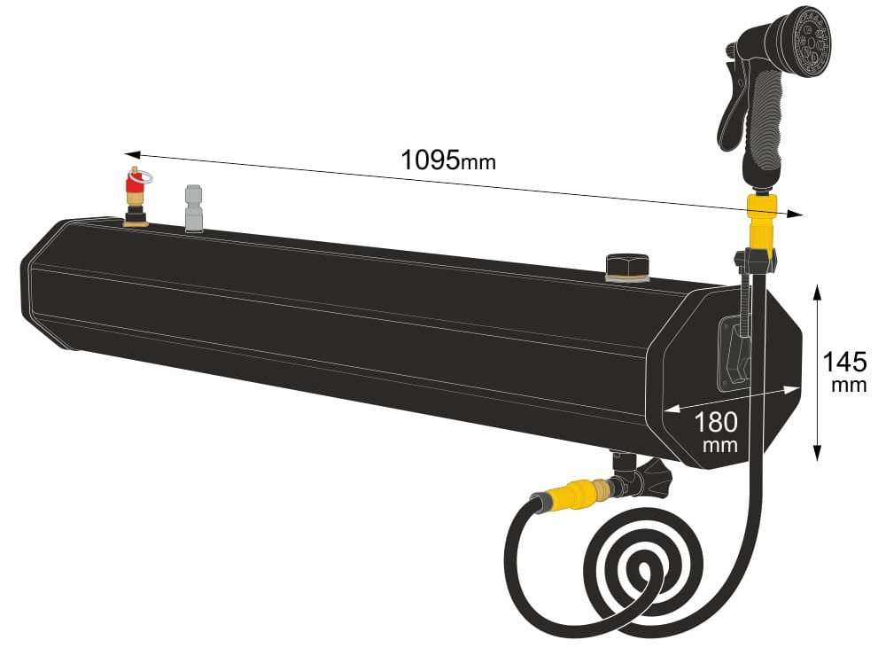 Ein Sicherheitsventil schützt den Speicher vor Überdruck. Interne Schwallbleche stabilisieren den Speicher und verhindern einen unkontrollierten Wasseraustritt während des Transports.