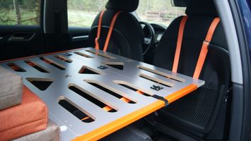 Fold down the rear seats. Move the driver and passenger seats as far forward as possible. Tilt the seatbacks toward the steering wheel and dashboard. Measure the length approximately halfway up the backrest of the driver or passenger seat. If you measure a minimum length of 176 cm or more, the bed can be folded out in the vehicle. The maximum bed length is 191 cm.