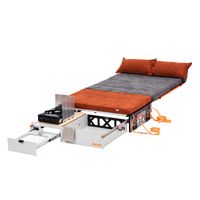 - 950 x 1910 mm mattress (adjustable), 6 cm thick, + 2 pillows